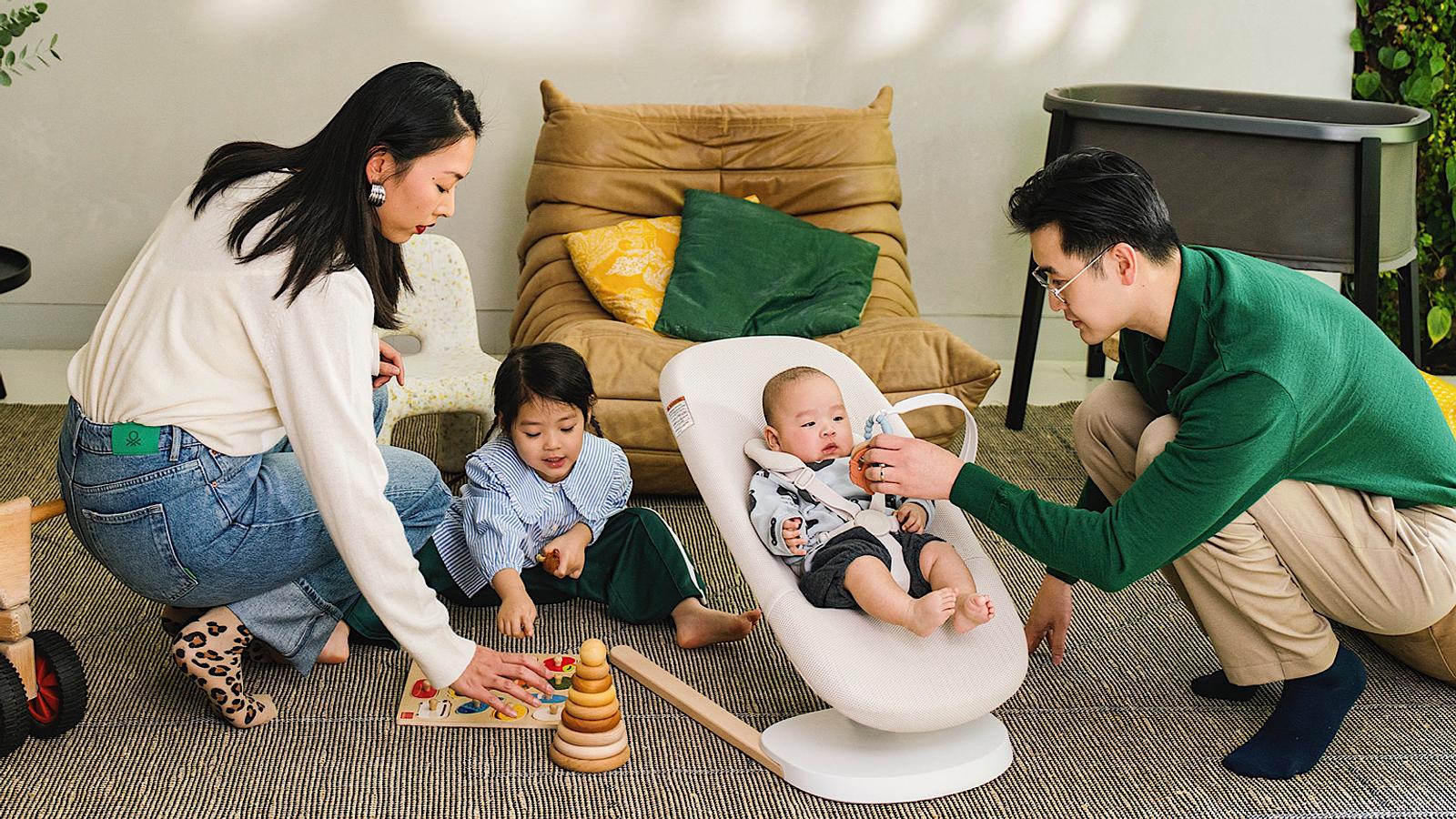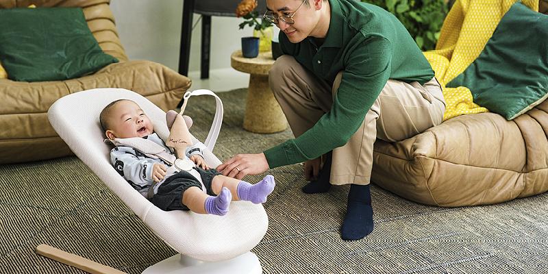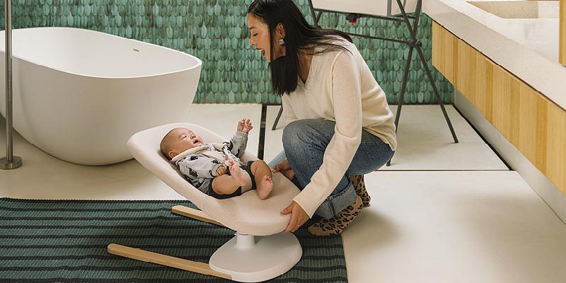 Another thing to consider is the portability of your bouncer or swing. You want to always keep your little one close to you, whether you are tidying up or grabbing a bite, so it needs to be easy to move around the house. Portable bouncers and swings like Stokke® Yoga™ are great for this. It is portable and easy to assemble and disassemble—meaning it can easily move around the house, be stored in small spaces, and travel with you no matter where you go.