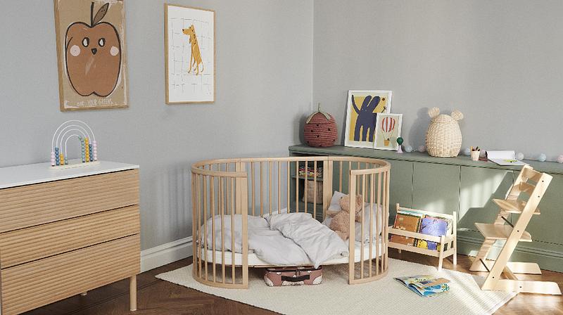 Choose furniture that grows with your baby to embody both sustainability and practicality like our iconic Tripp Trapp® Chair that lasts a lifetime. Convertible cribs that transform into toddler beds like our Stokke® Sleepi™ Mini do not only offer a long-term solution to your child's evolving needs but also reduce the need for frequent furniture replacements, thereby conserving resources and reducing waste.